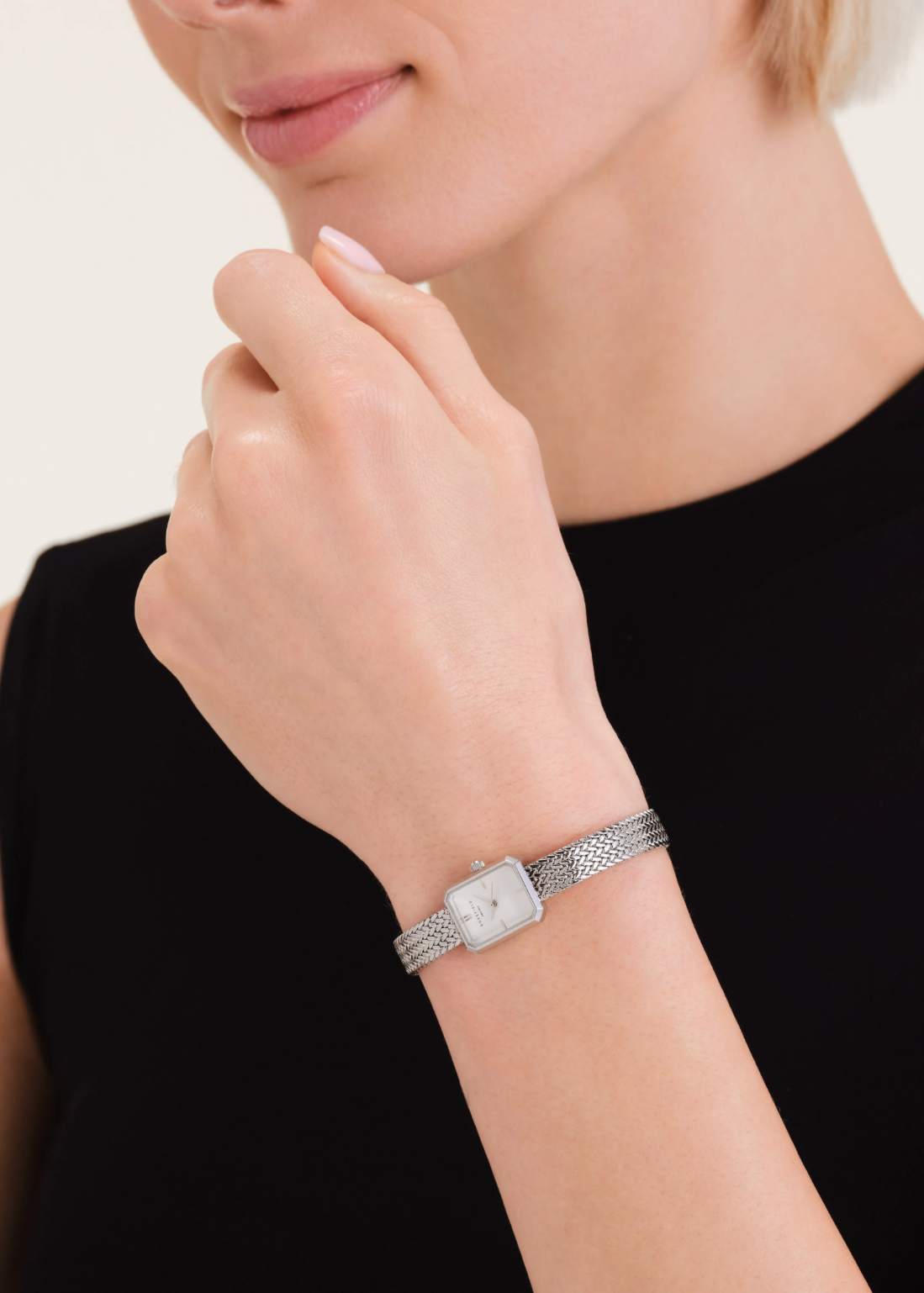 ROSEFIELD Mini Octagon Watch - Silver Mesh