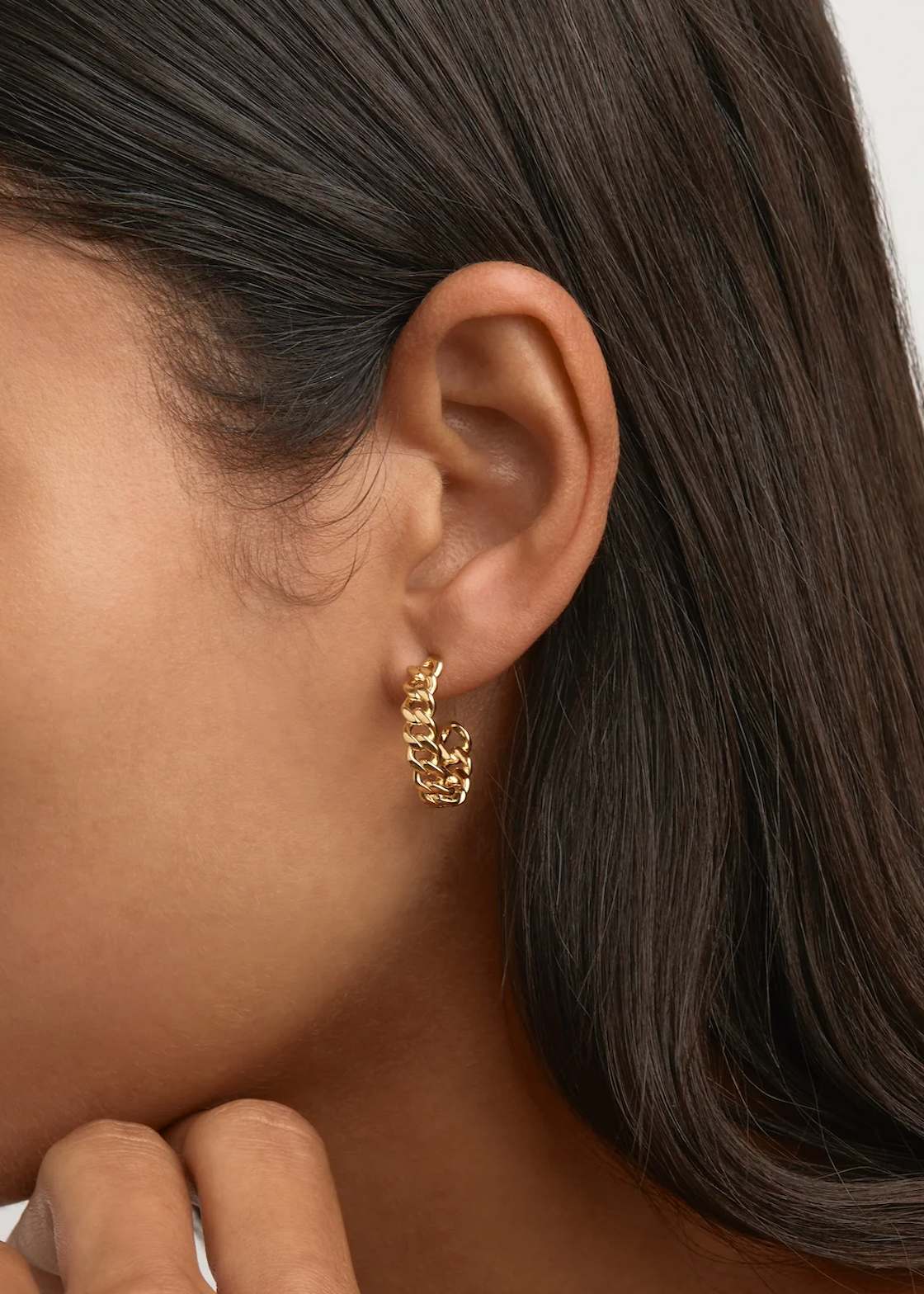 Embrace the love that shines from within - authentic and unfiltered – with the Radiant Curb Hoops. These hoops are a twist on your staplehoops, perfect for everyday wear. Available in 18k gold vermeil.