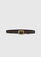 CAMILLA AND MARC Sonny chocolate brown leather belt with textured croc embossing and square gold buckle.