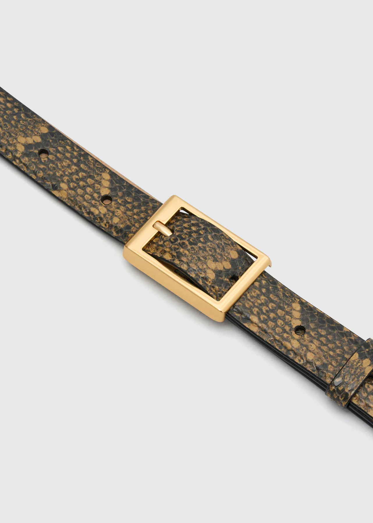CAMILLA AND MARC Sonny snake effect leather belt in tan with square gold buckle.