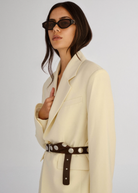 A statement silhouette for the modern muse. The Freddie reimagines the classic frame with a soft hexagonal shape and bevelled edges that catch the light from every angle. Bespoke organic L gold detailing at the temples adds a touch of polish, making this style feel both directional and refined.