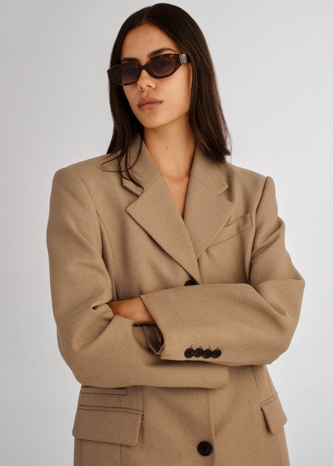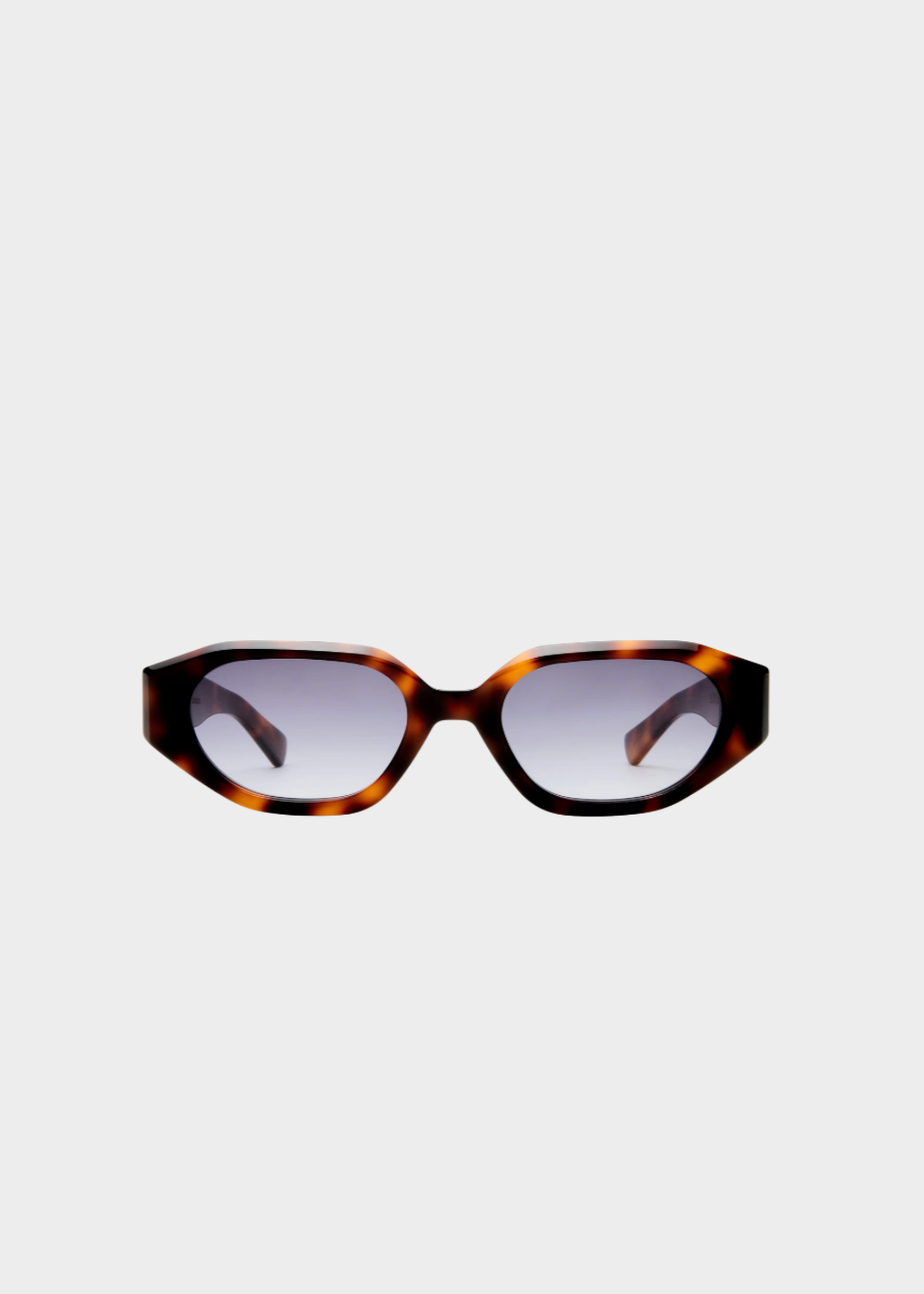 A statement silhouette for the modern muse. The Freddie reimagines the classic frame with a soft hexagonal shape and bevelled edges that catch the light from every angle. Bespoke organic L gold detailing at the temples adds a touch of polish, making this style feel both directional and refined.