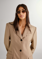 The Rocky is a subtle slim aviator frame, which marries edgy and elevated. The petite wire arms feature a bespoke signature pendent to accent the frame.