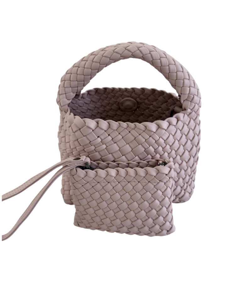 Elevate every look with the Carol Mini Tote – Blush pink, a compact yet stylish bag that’s both practical and fashion-forward. Handwoven with textured vegan leather, this tote delivers a crisp, fun, and timeless accessory that’s perfect for everyday adventures or evening outings.