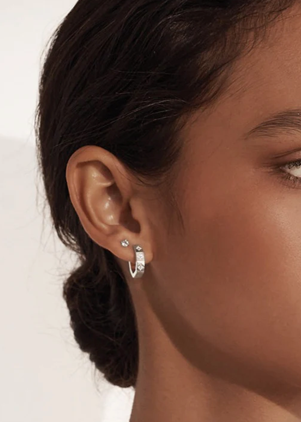 12mm Huggies with etched stars featuring White Topaz.