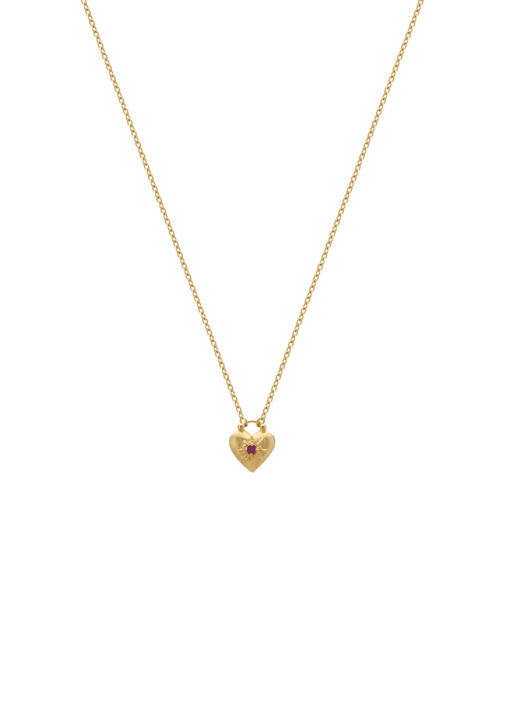 Crafted for dreamers, lovers and stargazers, wear the Love You Small Heart Necklace in Yellow Gold close to your heart as a reminder that you are loved. Adorned with a Ruby to channel love, courage and protection into your heart and back out into the cosmos.