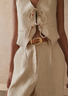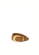 The Mazara belt will add a touch of sophistication to every outfit. The supple full grain leather is accentuated with a rounded, sculptural buckle with textured brushed gold that was custom designed in-house. Pair with your favourite jeans or tailored pants.