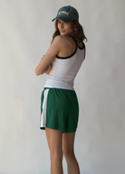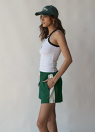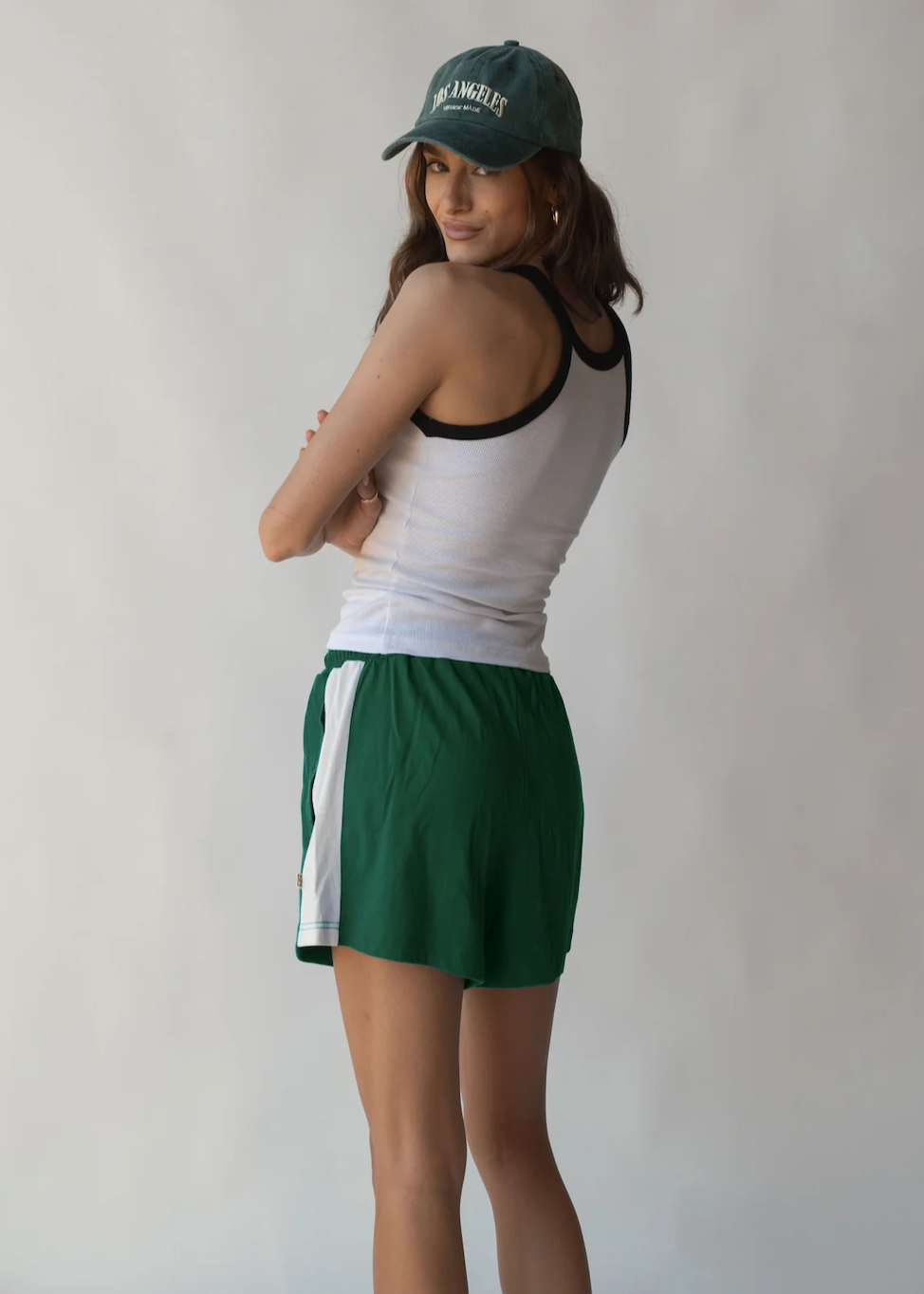 Introducing our Monogram Contrast Tank in Snow, crafted from a fine cotton elastane rib fabric with our signature monogram embroidered at the front. Thoughtfully updated from our best-selling Classic Tank, this style is a chic shape with thin straps, high-cut neckline and racer-style back. The classic black and white contrast is a wardrobe staple and pairs perfectly with our Sebastian Short in Deep Green.