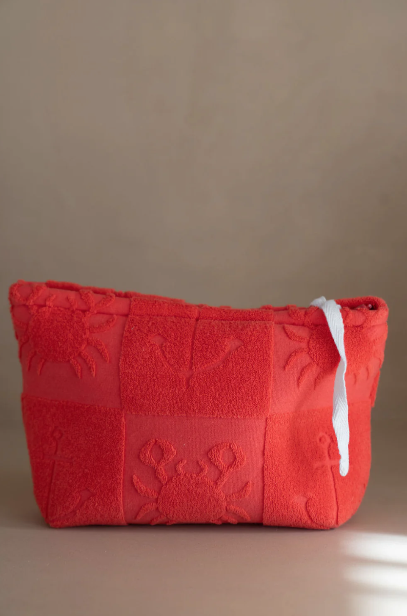 Introducing the must-have accessory for summer. Our beach clutch is crafted from our Seaside Terry Jacquard fabric in Lobster Red and features a vegan leather pull tab with zipper to close. This is the perfect companion for your beachside vacays.!