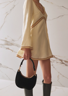 Eternally chic and ready to become your new event accessory, the Altura is a double pouch halfmoon shape made in the perfect size to accompany you on a night out. The slender silhouette fits comfortable under the shoulder and features a stunning leather-braided handle