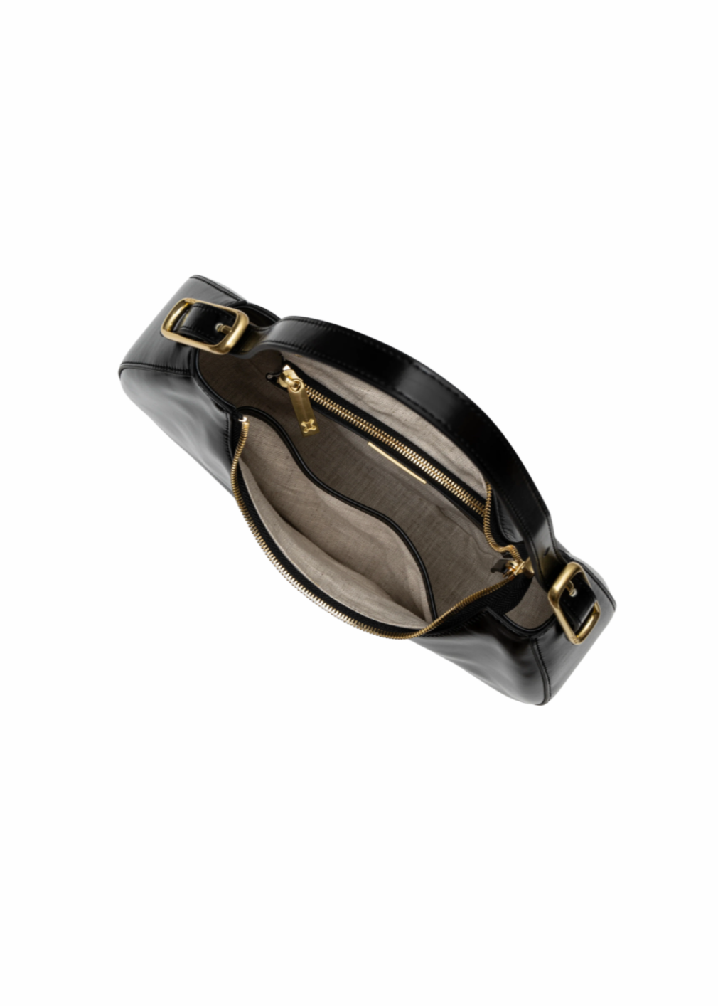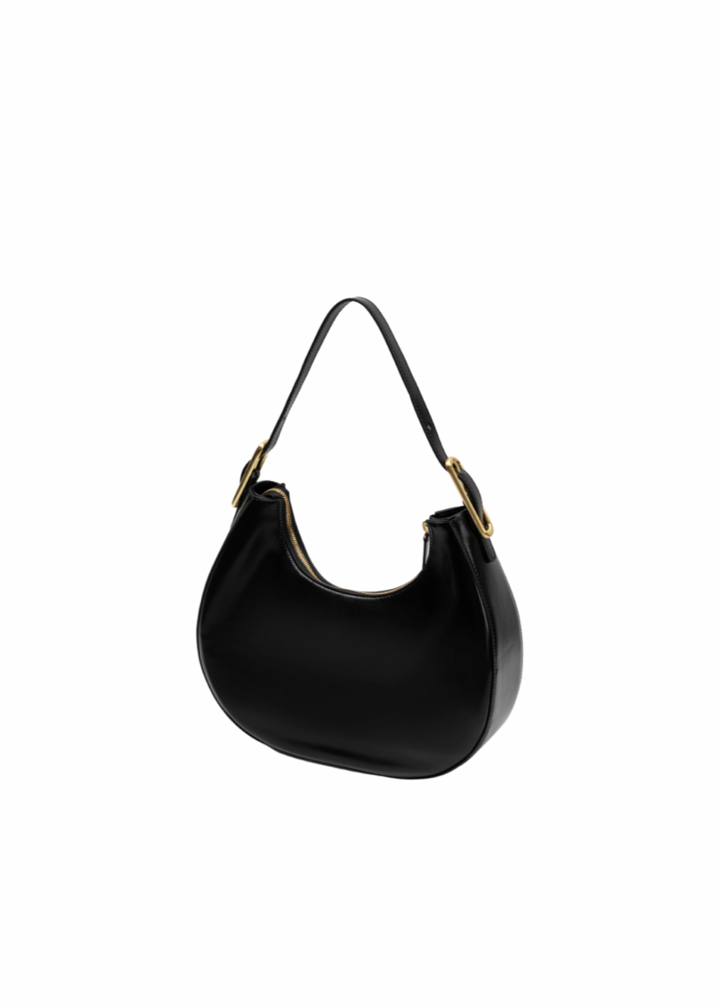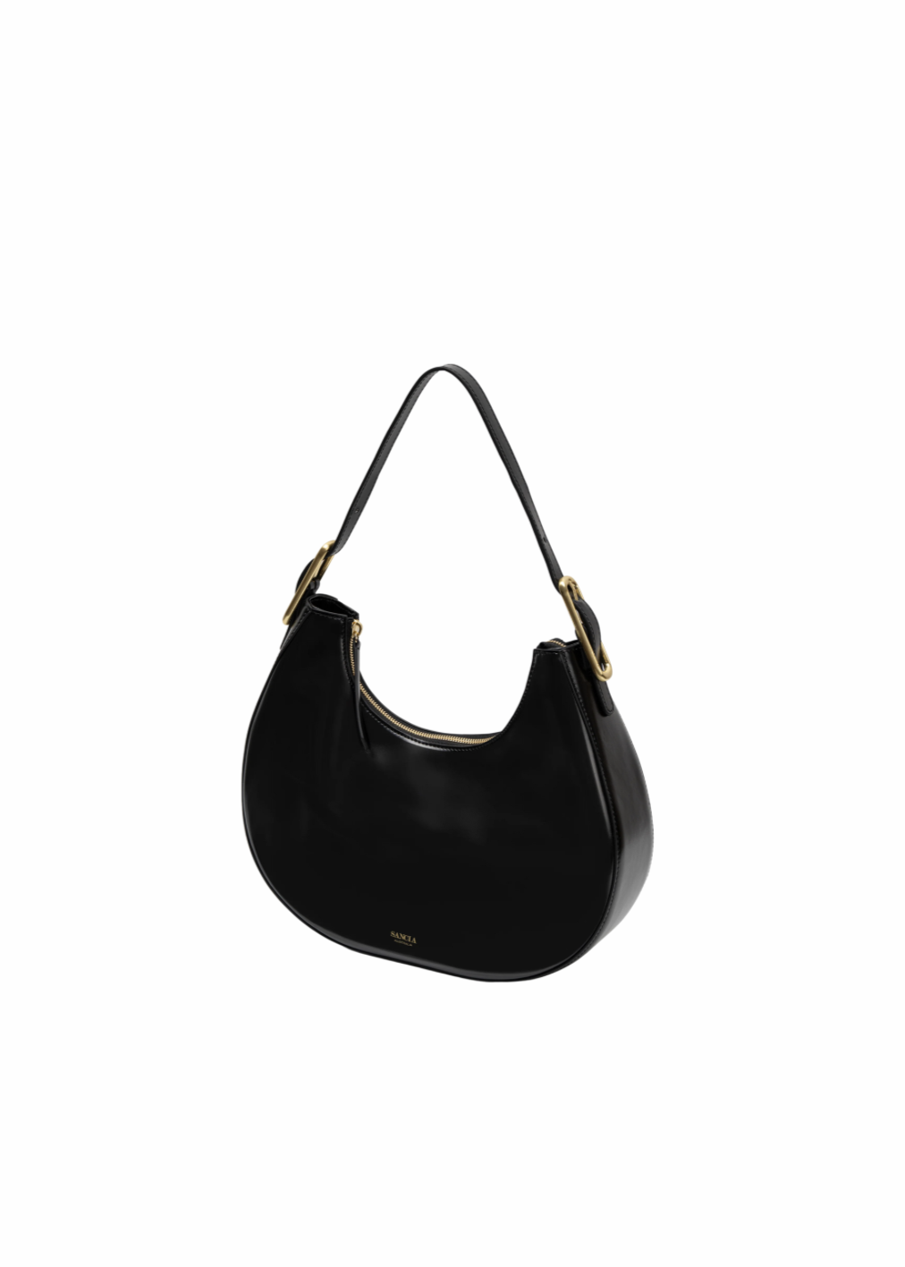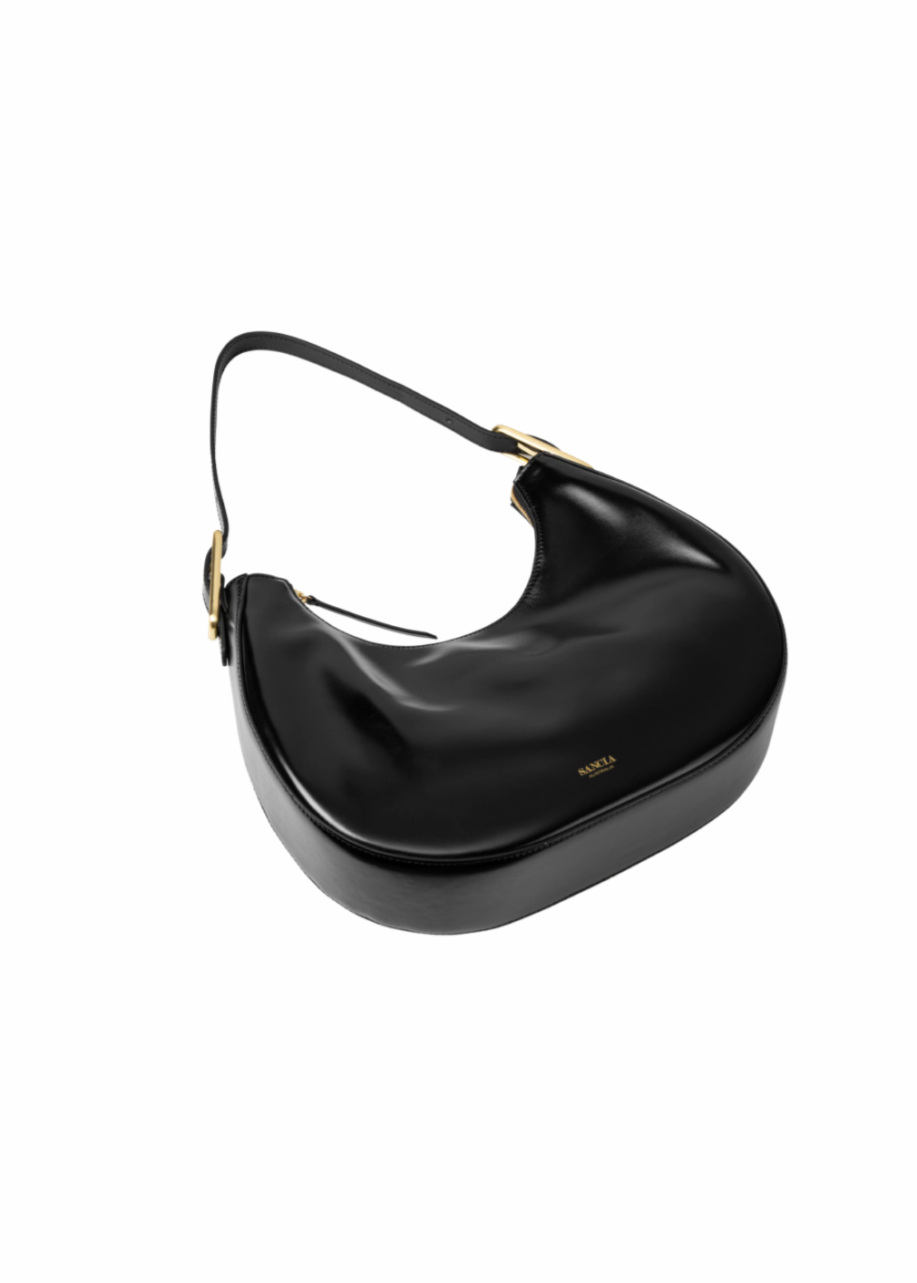 Introducing the Pilarre bag; a large half-moon shaped bag crafted in luxurious full grain leather. Accompanied by two different length straps, the Pilarre can be worn long or fit snuggly under the shoulder. The bag is completed with SANCIA's signature brushed gold buckles to add an extra touch of luxury