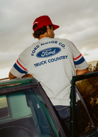 Meet your new go-to for everyday comfort with the Ford Truck Country Jersey Short Sleeve Tee. Crafted from heavy-weight brushed cotton, this tee delivers a solid yet soft feel that’s perfect for kicking back or tackling the day. A vintage wash adds a worn-in aesthetic right from the start, while screen-printed graphics on the chest, back, and sleeves bring bold detailing to this relaxed-fit essential.