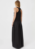 The Horizon Maxi Dress combines effortless style with a touch of elegance, featuring a racer back tank with a distinctive CAMILLA AND MARC monogram embroidery at the centre back. The cotton poplin maxi skirt is artfully gathered onto the top bodice at the waist seam, creating a graceful, flowing silhouette. This dress offers a seamless blend of modern design and classic comfort, perfect for a variety of occasions.