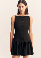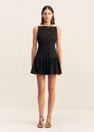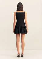 Drop waist square neck mini dress in black in a premium stretch cotton blend.