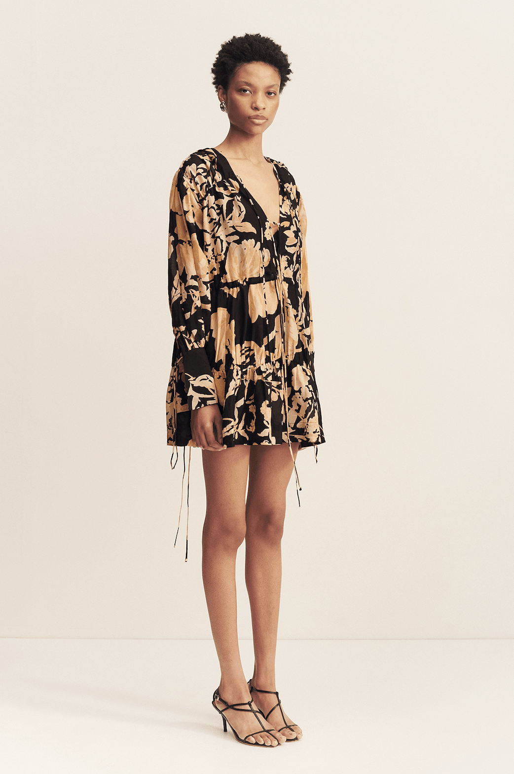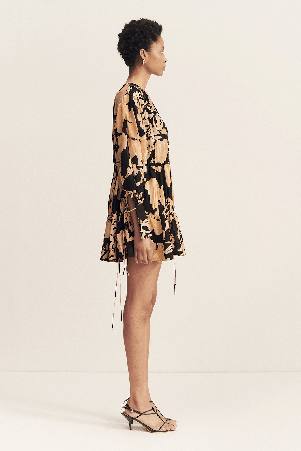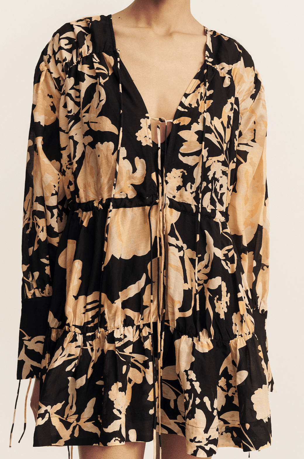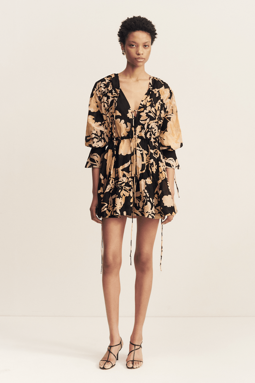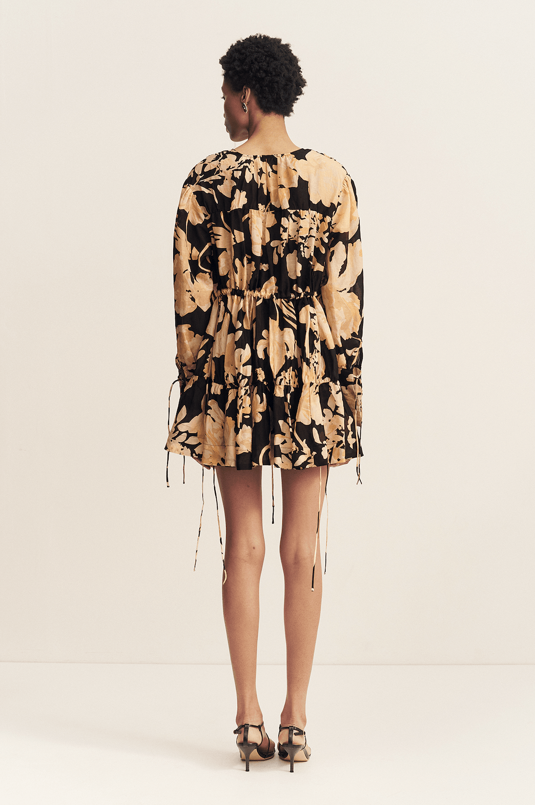 SHONA JOY Xenia Tiered Drawstring Mini Dress - Black/Apricot