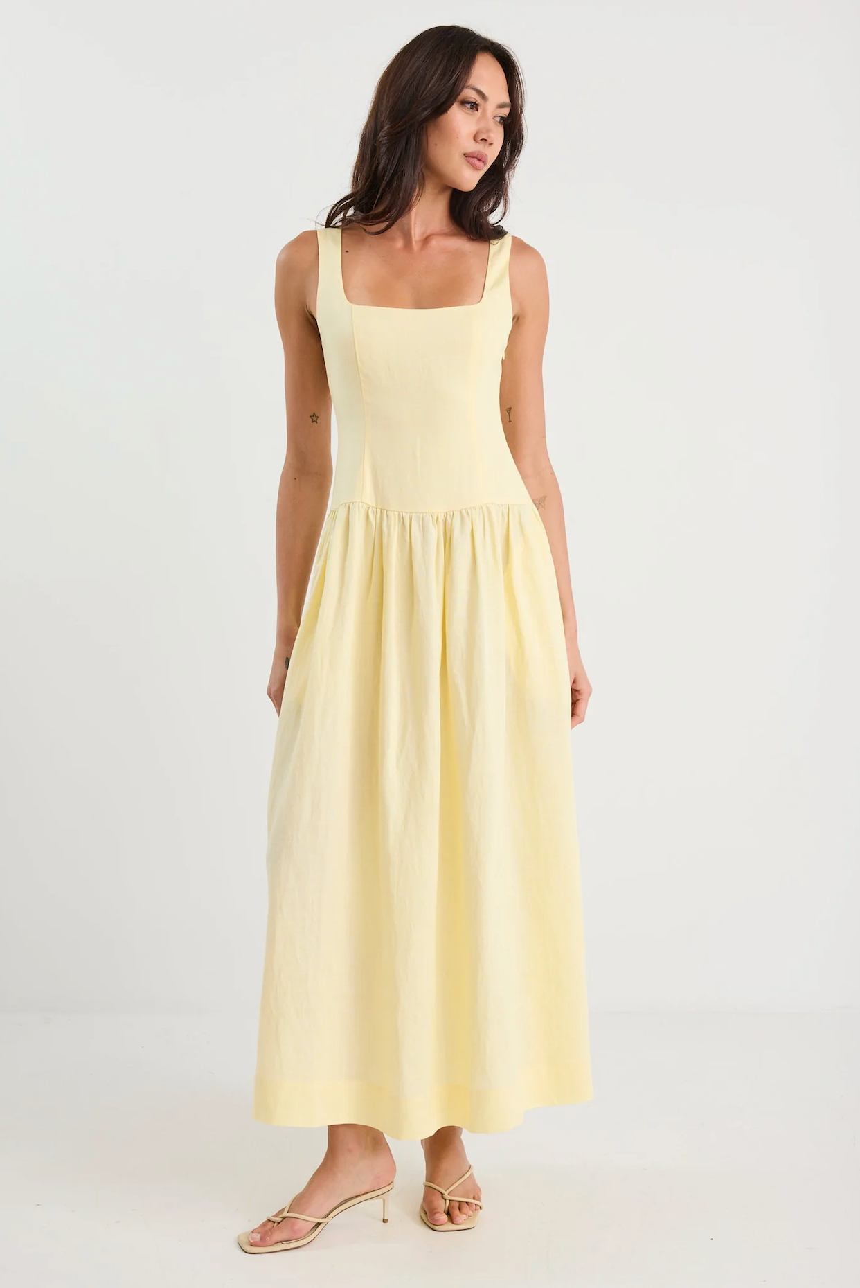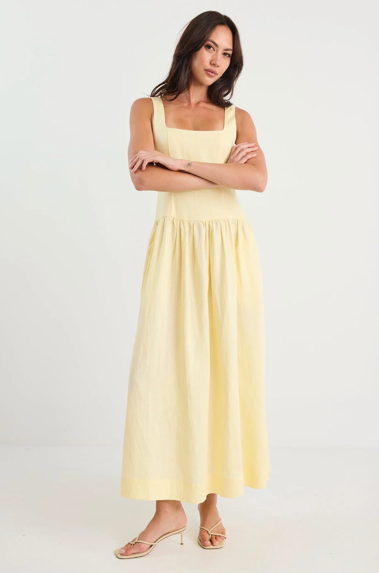 STORIES BE TOLD Gilded Sleeveless Square Neck Maxi Dress - Butter