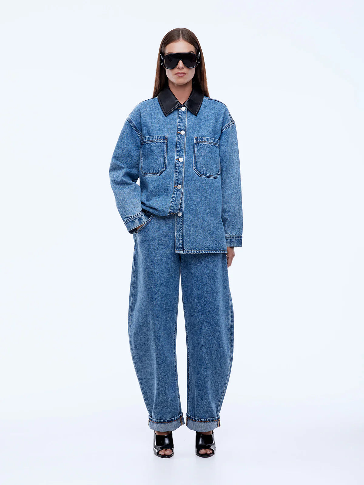 - Oversized denim shirt