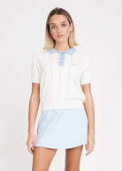 HUFFER Line Knit Polo - Chalk/Ice Blue