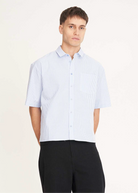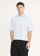 HUFFER Short Sleeve Box Shirt - Ice Blue Stripe
