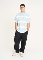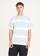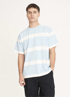 HUFFER Striped Short Sleeve Tee - Ice Blue/Chalk