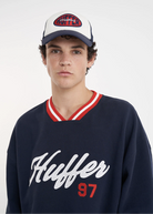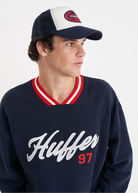 100% Cotton / 5 panel sports cap / Snapback adjuster / Embroided eyelets / Unstructured crown / Flat bill / Huffer branded placement embroid