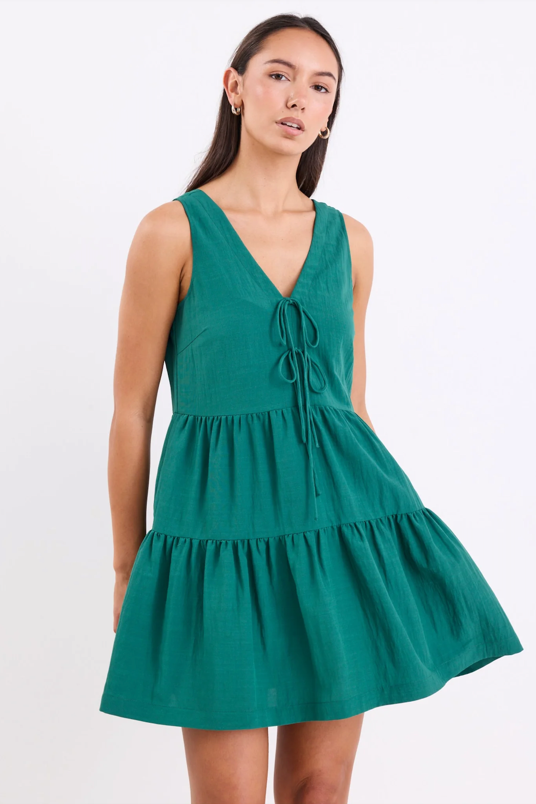 The Pivot forest sleeveless tiered mini dress from Ivy + Jack is all about relaxed femininity and easy charm. With a soft tie-front neckline and floaty tiered skirt, it offers a flattering shape that moves beautifully with you. The forest green hue feels refreshing and confident, while the light, textured fabric keeps it comfortable for all-day wear.