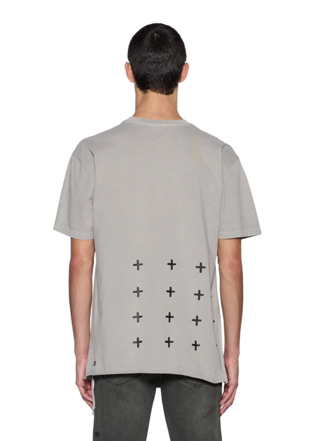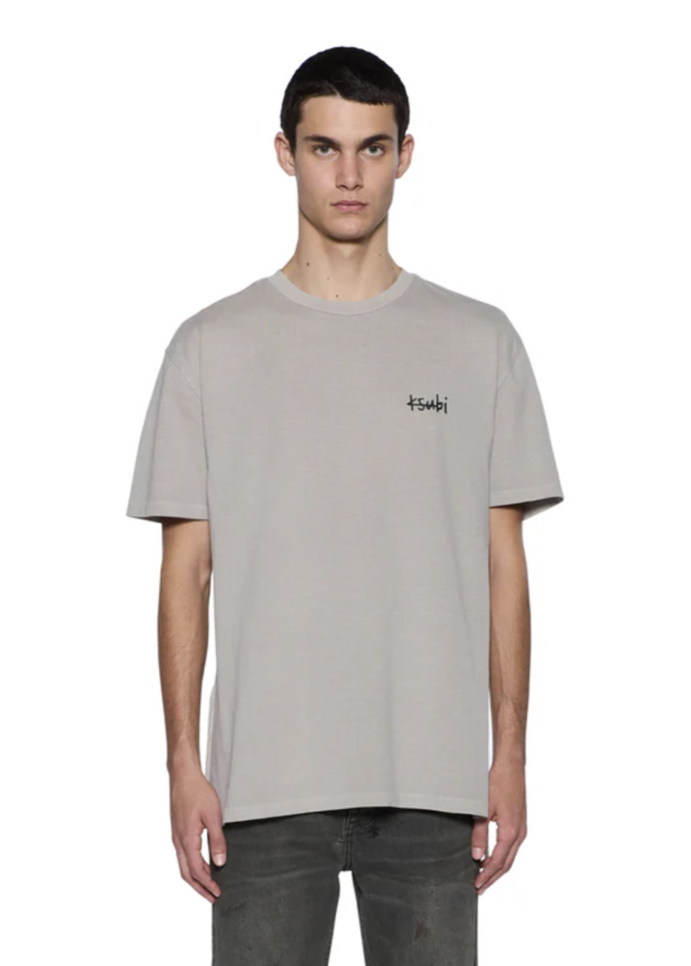 The All Day Biggie SS Tee Dust is an oversized short-sleeve t-shirt featuring a raw-cut back hem, reverse overlocked side seams, and Ksubi's signature rats tail detail. Crafted from premium cotton jersey, it is garment-dyed in a faded dust colorway for a worn-in look. Design details include a Ksubi 1999 embroidery at the front crest, finished with signature T-box and 4x4 branding