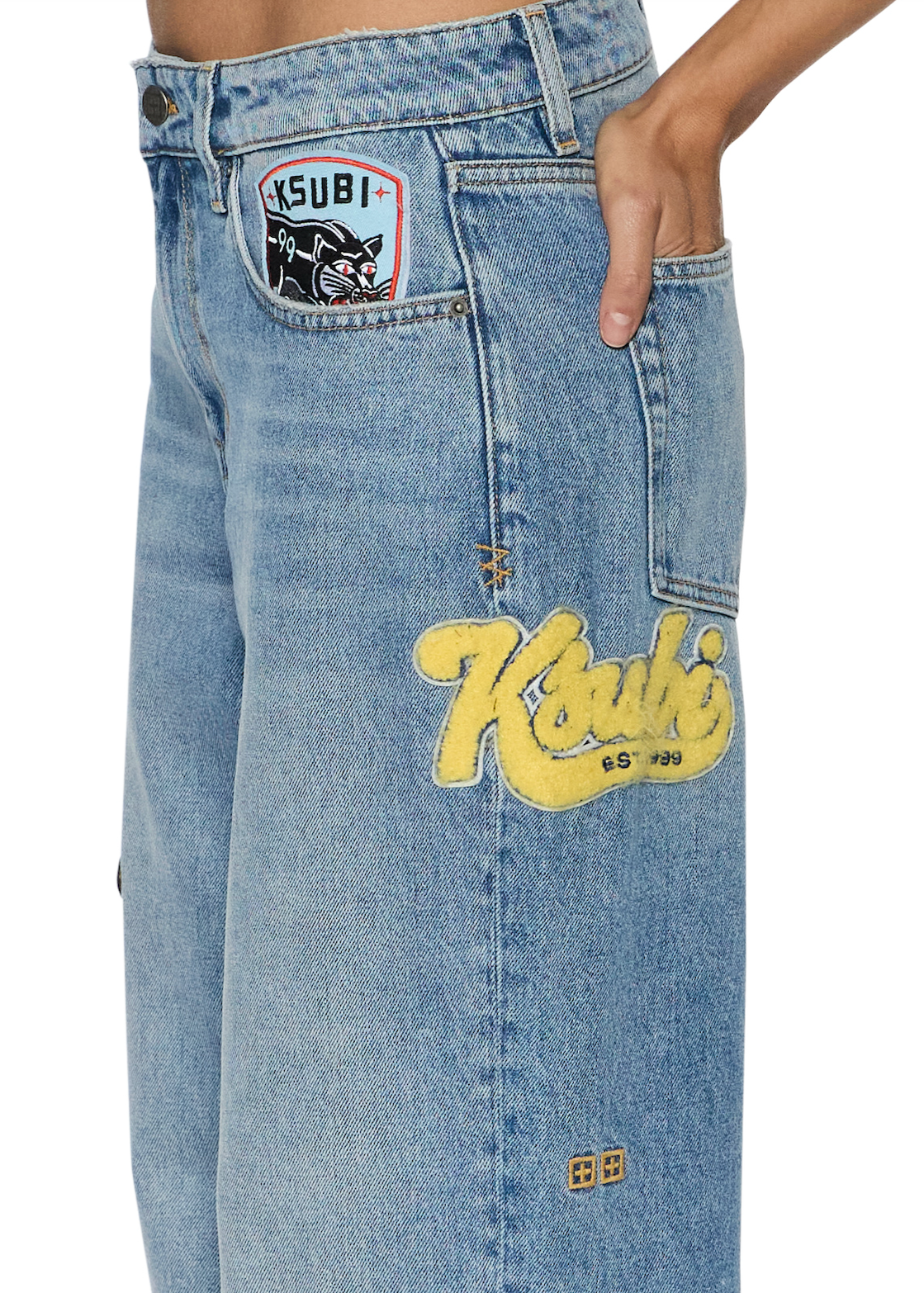 KSUBI Low Rider Horizon Patch Jeans - Denim