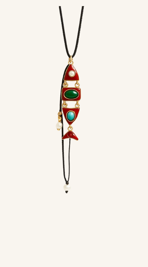 – Pendant: Catch of the Day enamel and stone-inspired detailing, approx. 6 cm drop length.