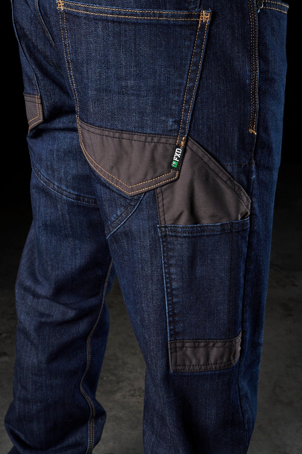 FXD WD.2 Original Work Denim (without kneepads) in Indigo Stomp Wash are made from 10.5 ounce (356 GSM) S-Gene® Denim from Cone Denim™ mills in North Carolina, USA. Cone denim™ have been a world leader in denim innovation from their American heritage based mills in Greensboro North Carolina since 1891. The FXD WD.2 Original Work Denim (without kneepads) features DURA500™ Advanced Nylon and Polyurethane Canvas abrasion panels. DURA500™ is a 500 denier nylon oxford treated with polyurethane for high tensile strength and performance durability. DURA500™ provides long-lasting enhanced tear and abrasion resistance.
