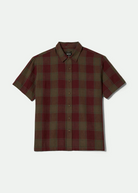 BRIXTON Cru Linen Blend Short Sleeve Woven Shirt - Olive Surplus/Port