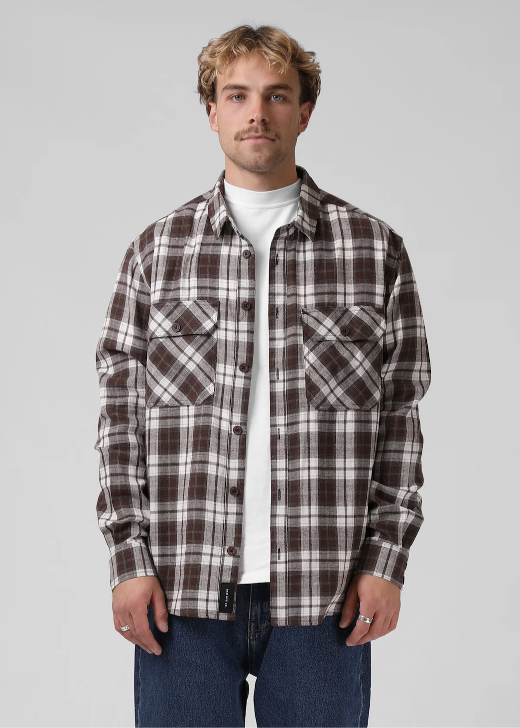RPM Plaid Long Sleeve Shirt - Brown Plaid