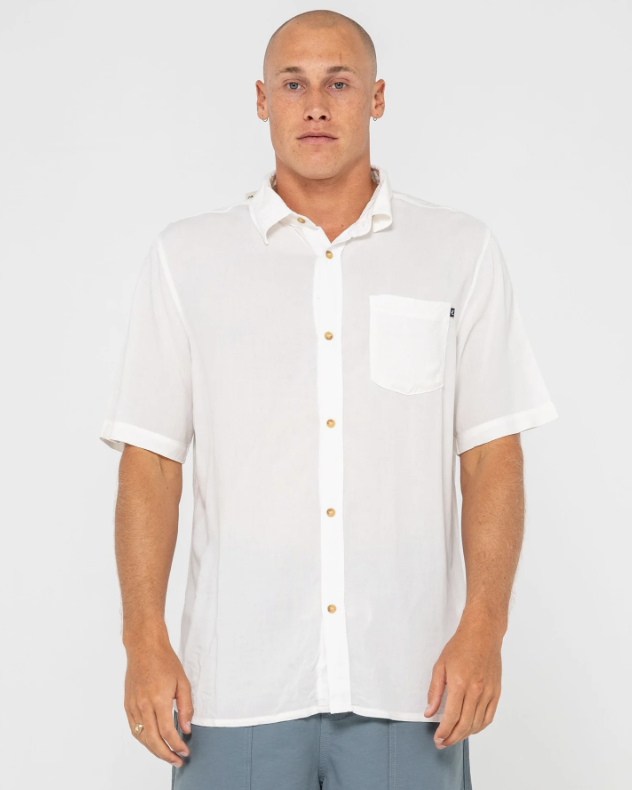 RUSTY Razor Blade Short Sleeve Rayon Shirt - Whisper White