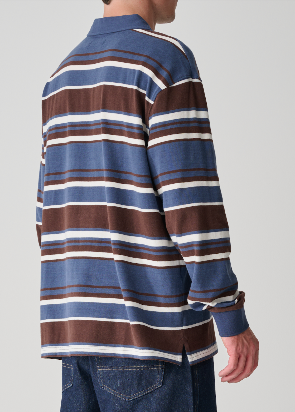 S-DOUBLE Peach Rugby Shirt - Navy Stripe