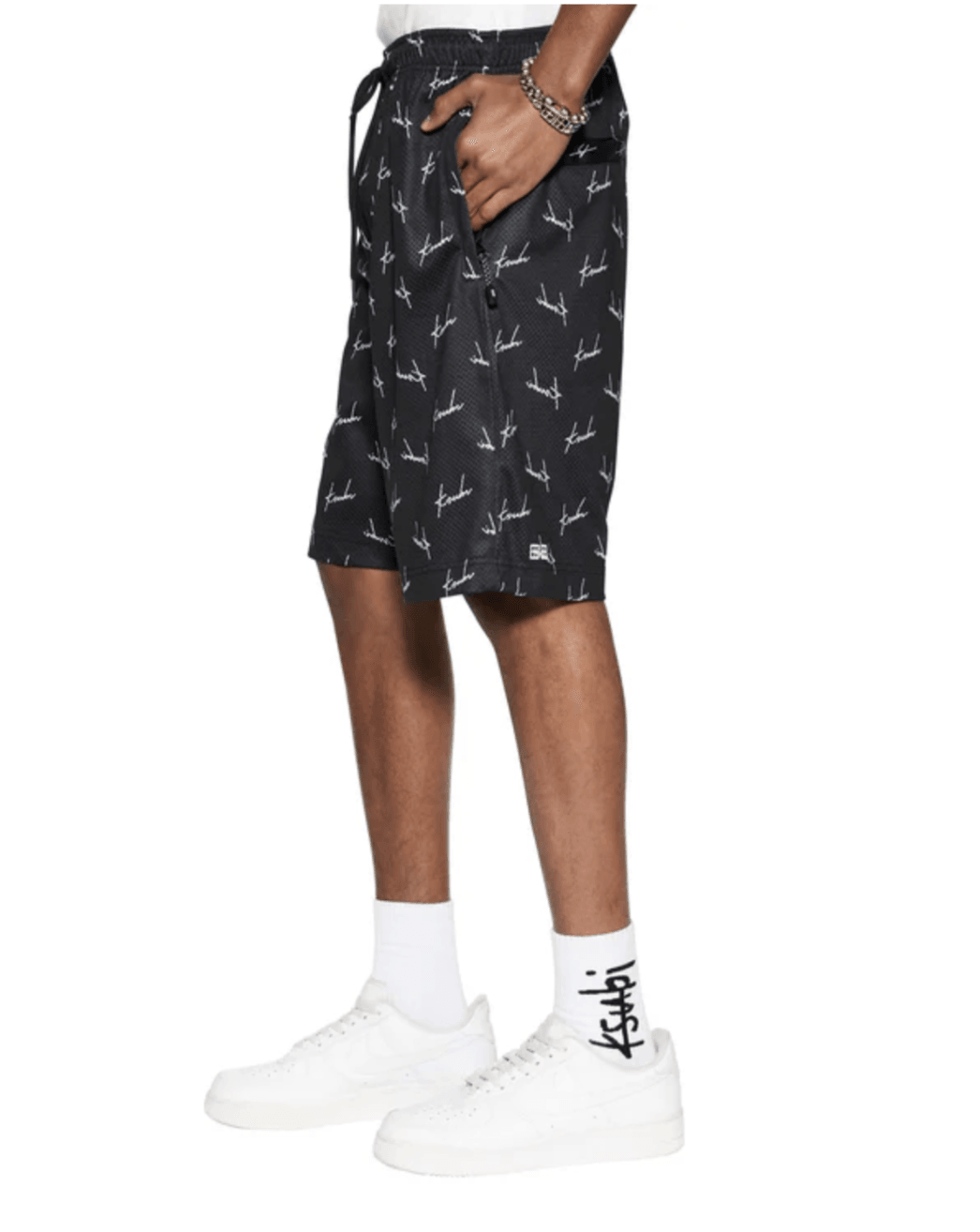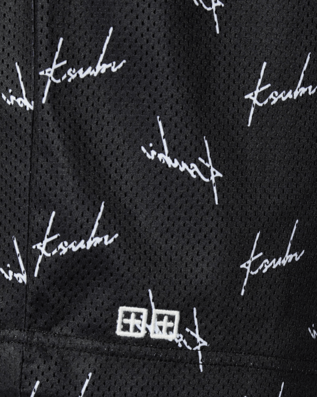 The Skript Mesh Short Black is a basketball-inspired mesh short with a long, wide leg and an elastic waistband, made from premium printed mesh fabric. It features seasonal printed yardage, side pockets, rear welt pockets, and is finished with signature embroidered Ksubi branding