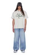 The Prestige Biggie SS Tee Antique White is an oversized fit short sleeve t-shirt with a raw-cut back hem, reverse overlocked side seam, and signature rats tail. Made from a premium cotton jersey in a garment-dyed creamy white with an aged wash, it features seasonal flocked artwork at the front and is finished with signature T-box and 4x4 branding.