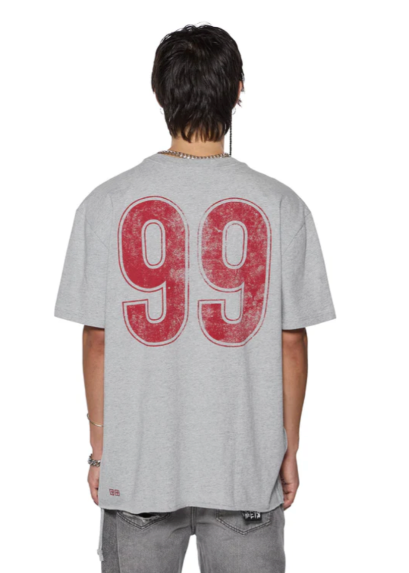 The Stinger Biggie SS Tee Grey Marle is an oversized fit short sleeve t-shirt with raw-cut back hem, reverse overlocked side seam, and signature rats tail. Made from premium grey marle with an aged wash, it features seasonal raised rubber artwork at the chest and is finished with signature t-box and 4x4 branding