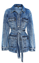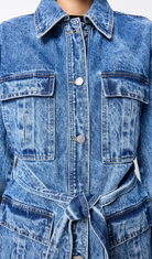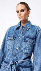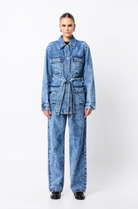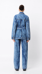 The Prism Jacket brings a refined edge to classic denim. Crafted in a statement acid-wash finish, this straight-fit, safari-inspired silhouette features a waist-defining belt, oversized square patch pockets, and a button-down front that adds both structure and sophistication. Designed for versatility, it can be worn open or buttoned, styled casually or elevated with tailoring. Pair with the matching Prism Jean for a bold double denim moment, or layer over the Brooklyn Top and tailored pants for effortless weekend cool. A standout piece in any modern wardrobe.