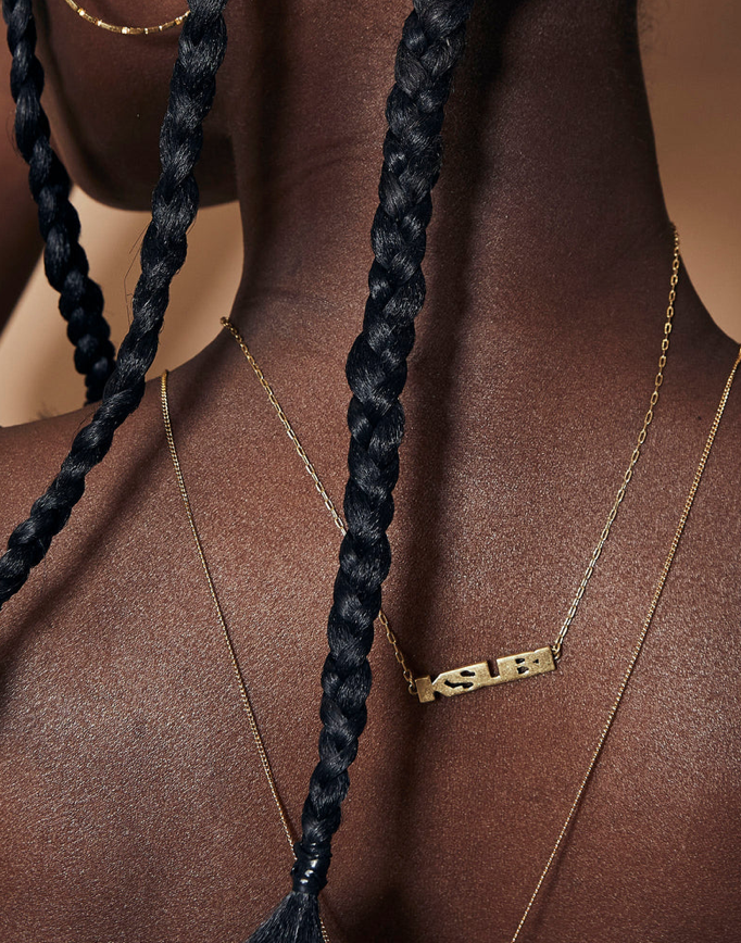 The 18K Dripps Sott Necklace features Ksubi's signature Sign of the Times logo on an adjustable chain, with a small cross logo charm at the clasp. Made from 925 Silver with 18K Gold plating, this peice is crafted from hypoallergenic and nickel-free materials.