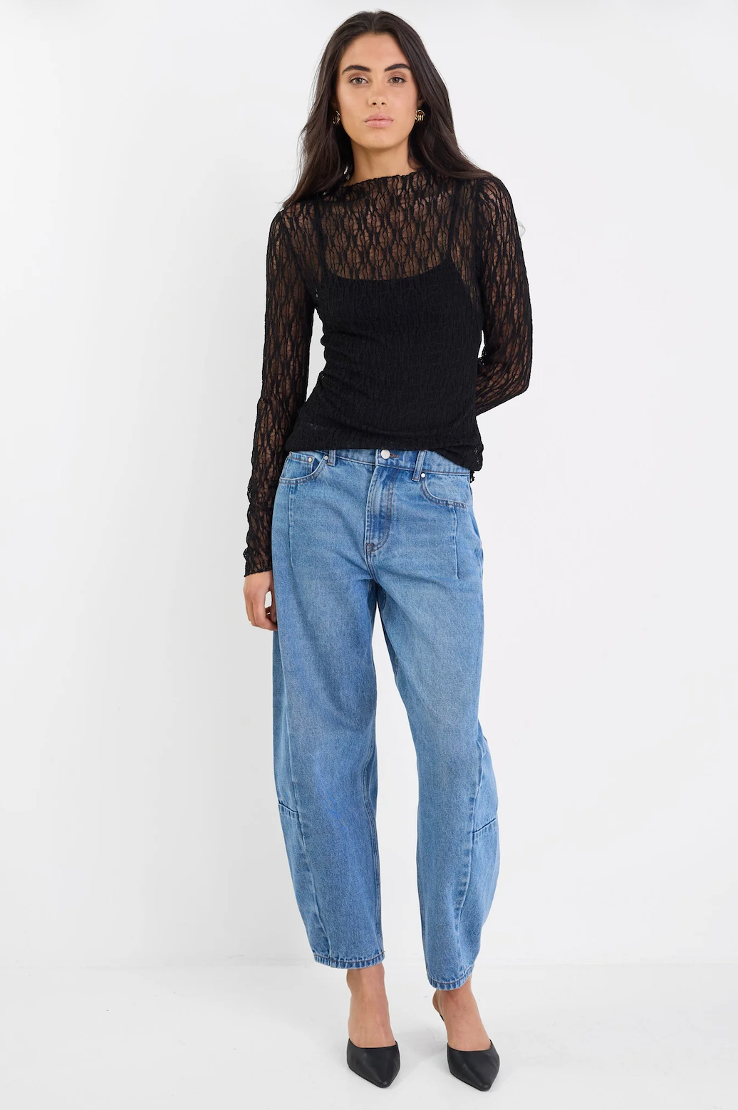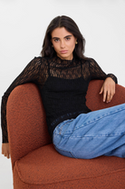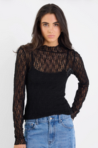 AMONG THE BRAVE Giving Black Long Sleeve Top - Black Lace