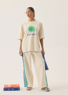 The Sunset Pant in Warm White is the chic summer pant you've been looking for. Cut in a soft and breathable cotton linen fabric with contrasting trims that elongate the leg.  Featuring an elasticised waistfor comfort, the Sunset Pant is both flattering and comfortable. Wear yours with our matching Margarita Oversized Tee in Natural for the right balance of comfort and sophistication.
