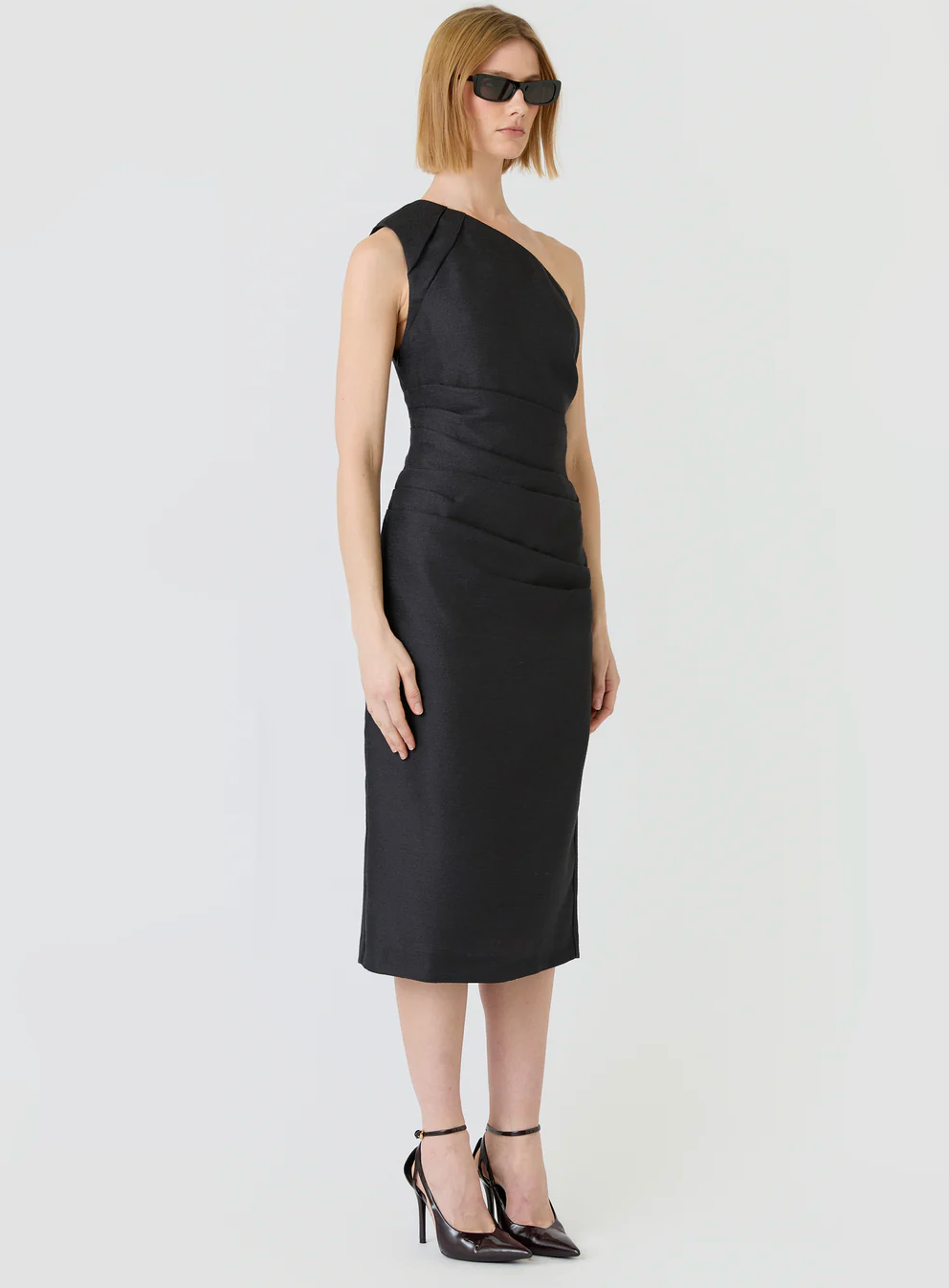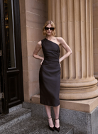 ESMAEE Affinity One Shoulder Midi Dress - Charcoal