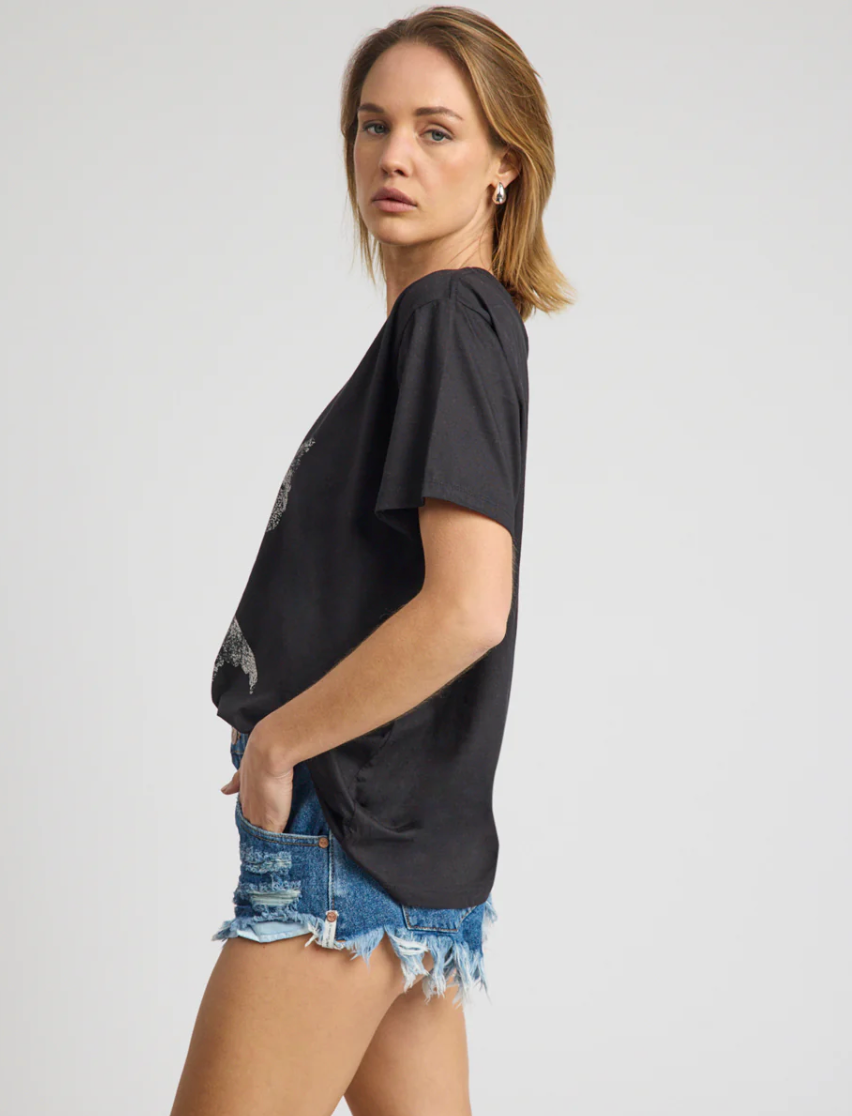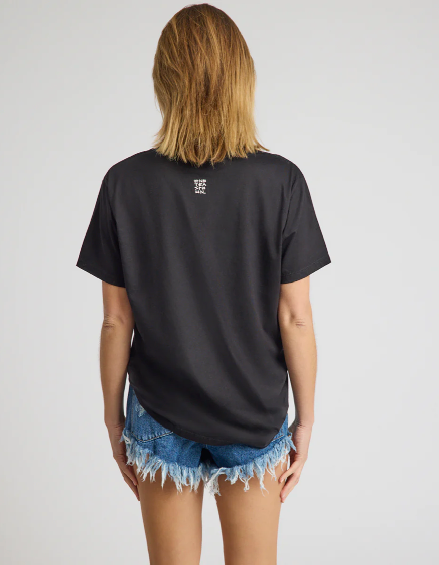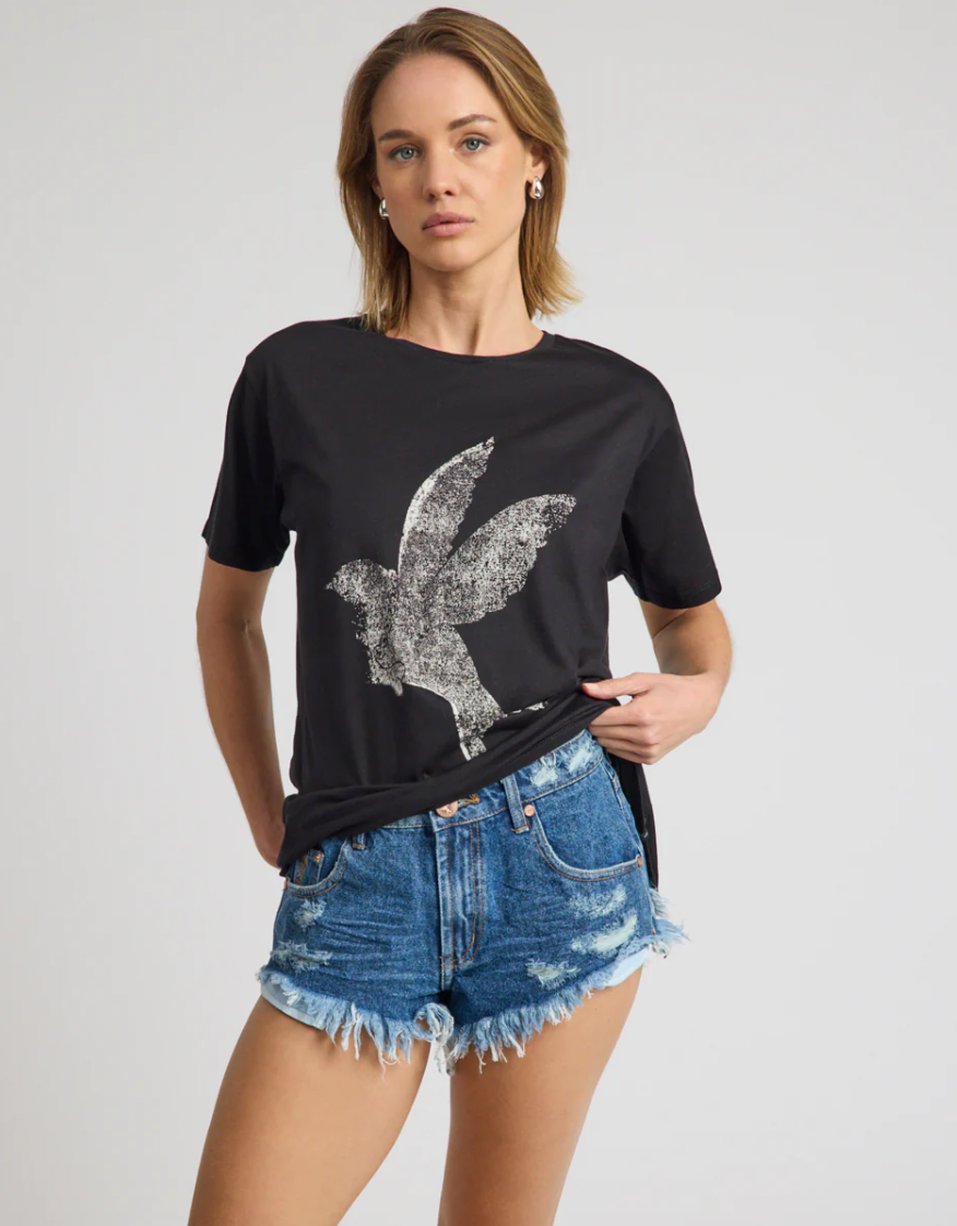 The BLACK BRUSHED BOWERBIRD BOYFRIEND TEE is a laid-back classic with signature One Teaspoon attitude. Relaxed, effortless and perfectly oversized, it’s the kind of tee you’ll reach for on repeat.