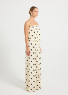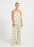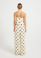 The Sophia Pant by PASDUCHAS is crafted from rayon crepe featuring an exclusive polka dot print. Designed to sit firmly at the true waist with a flat front and functional belt loops, it falls to a wide, full-length leg. Finished with a centre-back invisible zipper for comfort and ease of fit. Pair with the Sophia Cami for a chic matching set that can be worn day to night.