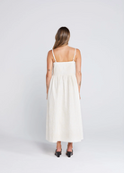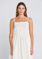 Our all-time favourite silhouette is back, now with a fresh update. Crafted in a creamy daisy print with adjustable straps and pockets. It's the perfect trans-seasonal style that you can wear time and time again.