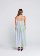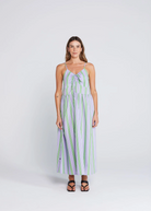 Introducing the Zinnia Dress! Crafted in a fun cotton stripe, this piece features a front tie that you can style into a bow. With adjustable straps and a drop waist, oh and I nearly forgot, pockets too of course!!