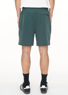 4% Spandex / 146gsm / Relaxed fit / Elasticated waistband / Adjustable webbed belt / Front patch zipper pockets / Back zipped welt pocket