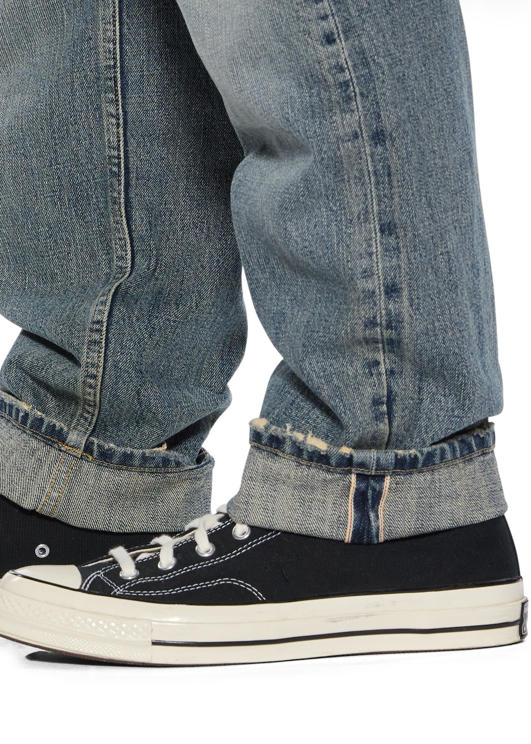- Straight tapered leg denim jean