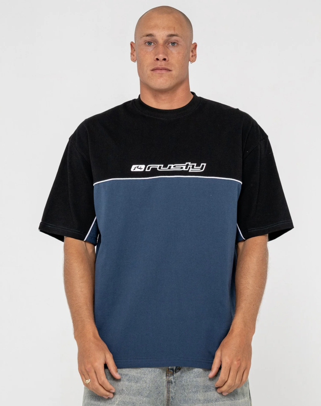 Oversized R2K Fit Tee With Panel And Piping Details And Rusty R2K Print. 100% Cotton Jersey