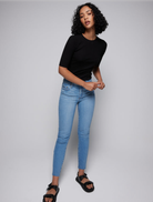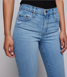 A newest addition to our denim collection, the Claudia Jean vision is a skinny fit, high rise, ankle crop jean that features a grungier look with the heavy distressing and raw hem, but without losing its feminine touch. A relaxed twist on the traditional jean. Designed to stand the test of time and grow with you as you wear them in over time